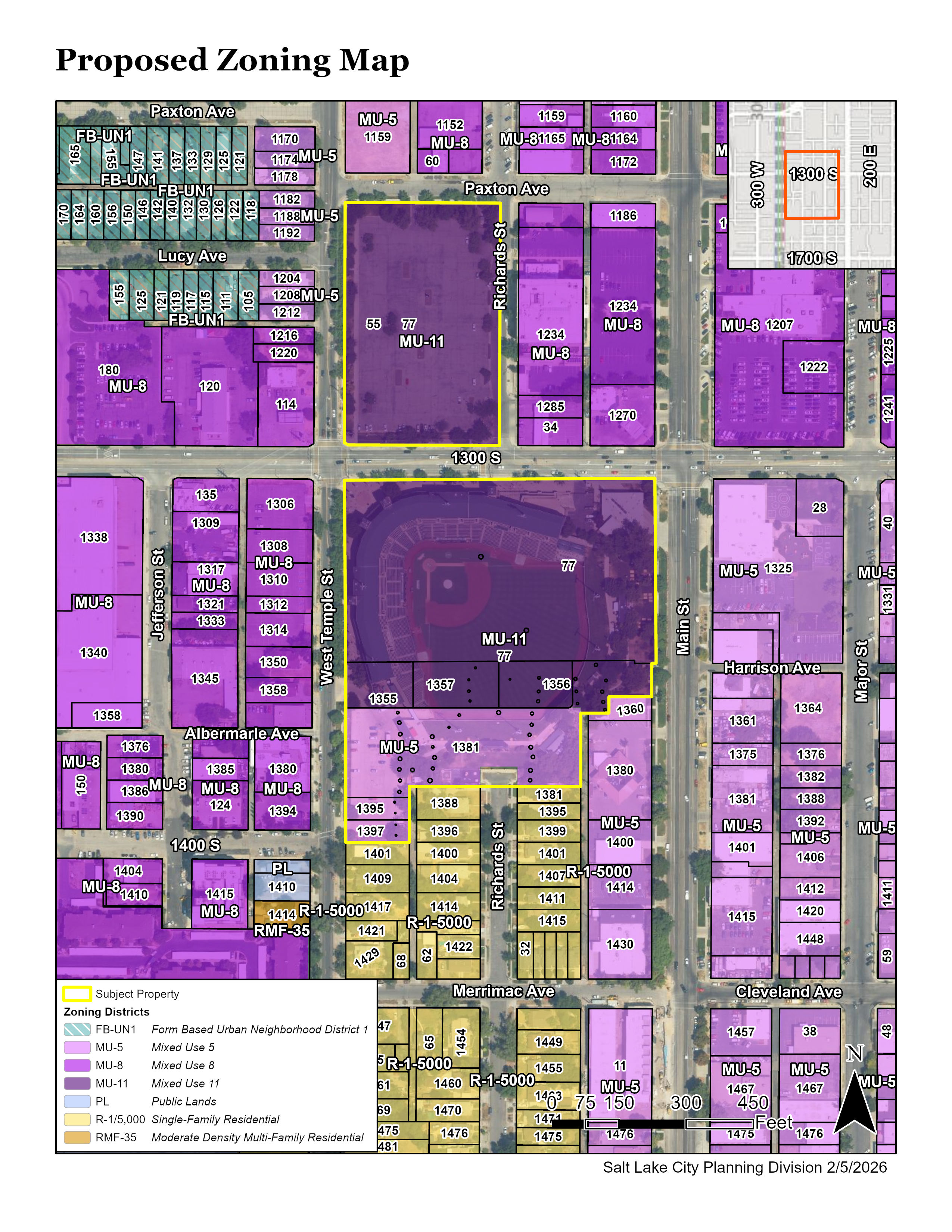 The Mayor has initiated a petition for a zoning map and text amendment for city-owned property that includes the Ballpark (formerly Smith’s Ballpark) at 1300 South and West Temple, along with the surrounding city-owned land. The intent of this amendment is to establish zoning regulations that align with the Ballpark NEXT Community Design Plan, which was completed by the Community Reinvestment Agency and adopted by the City Council.