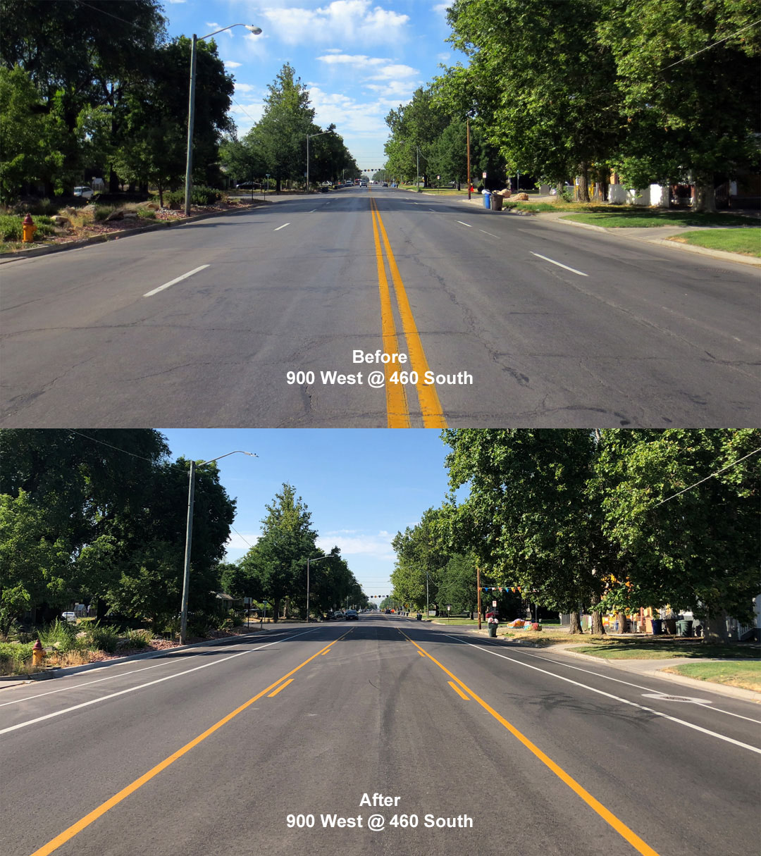 The 900 West Community Livability Project was implemented to increase livability, safety, and mobility for all roadway users. The project transformed 900 West from North Temple to 1700 South into a complete street with one vehicle lane in each direction, a center turn lane, bike lanes, and pedestrian and transit amenities. The roadway was converted from four to three travel lanes between 200 South and 800 South and from five to three travel lanes in all other areas. On-street parking was also added on both sides of the street between 800 and 1700 South. As part of the project, crosswalk improvements were made at 700 South, 800 South, and Genesee Ave. The crossing improvements and overall project are in support of the community’s desire for a neighborhood that is walkable and livable, as outlined in the Westside Master Plan.
