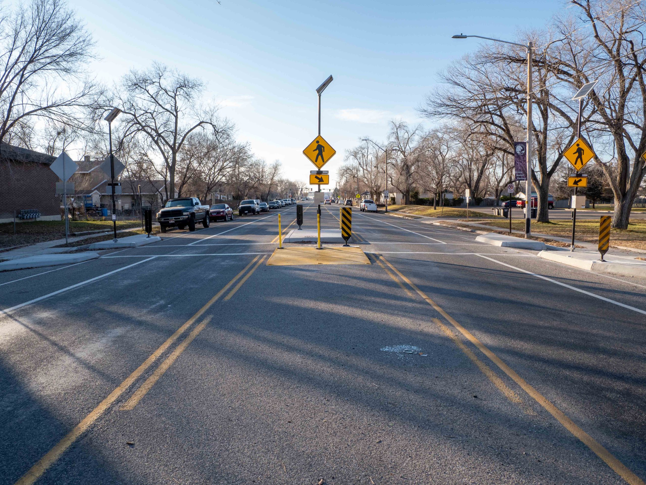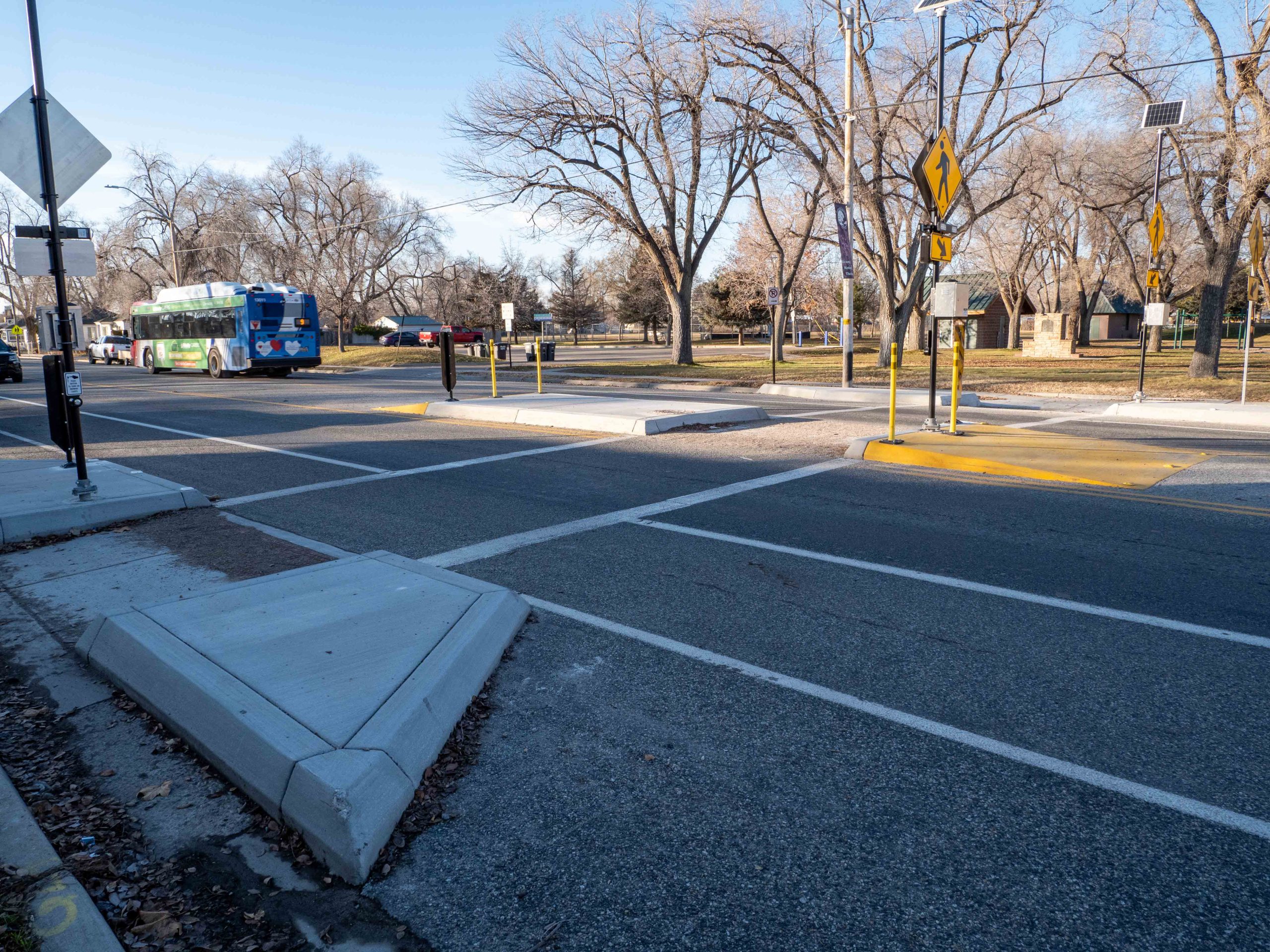 - New flashing crosswalk signs with improved curb ramps, curb extensions, and a pedestrian refuge island