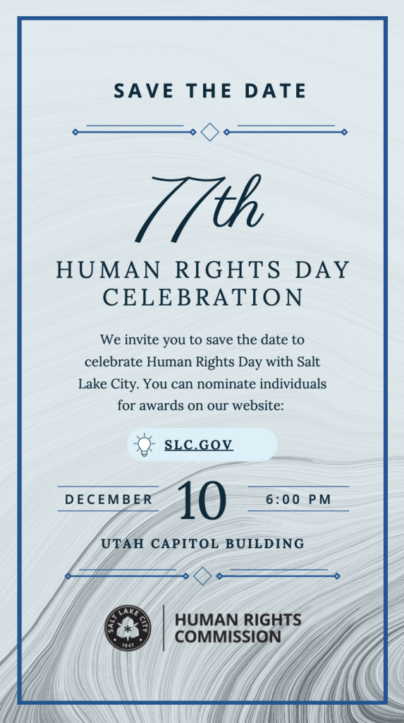 Every year in December, the Salt Lake City Human Rights Commission hosts a celebration in honor of the Human Rights Day marked on December 10th. The celebration will be held on Wednesday, December 10th from 6 PM to 8 PM at the Utah State Capitol Building (Rotunda – Second Floor).