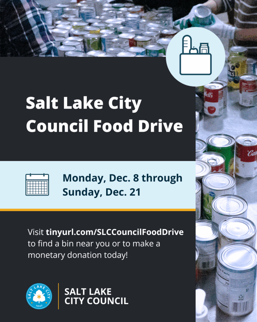 Join the Salt Lake City Council in a neighborhood food drive benefiting the Food Justice Coalition.