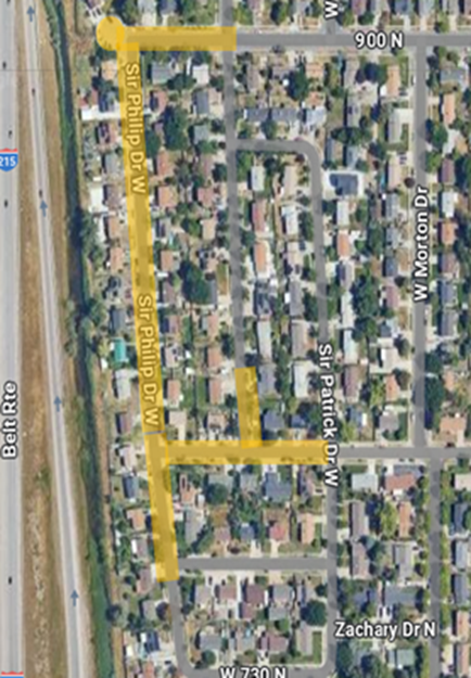 Salt Lake City’s Call2Haul service will collect these items once dumpsters have been removed from homes located in the highlighted areas of this map. There’s no need to call and schedule. Streets eligible for pickup include highlighted areas of Sir Phillip Drive, Sir Michael Drive, 800 North and 900 North. Call 801-535-6953 with specific questions.