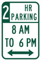 - Two-hours per spot Monday through Saturday, 8 a.m. to 6 p.m.