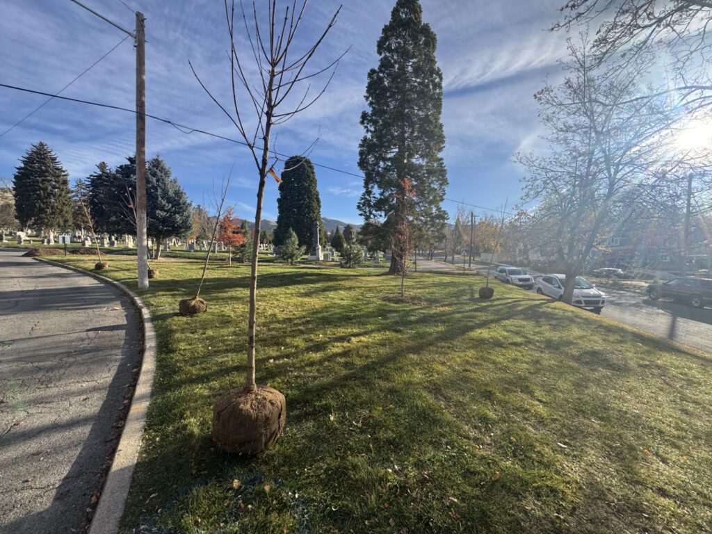 Since the 2020 storm, Public Lands has been working to restore the cemetery’s urban forest, along with the 1,500 trees lost city-wide. The Urban Forestry team has not only replaced all the lost trees in the City, but they have added an additional 8,500 trees across Salt Lake City — in parks, along streets, in medians, and neighborhoods.