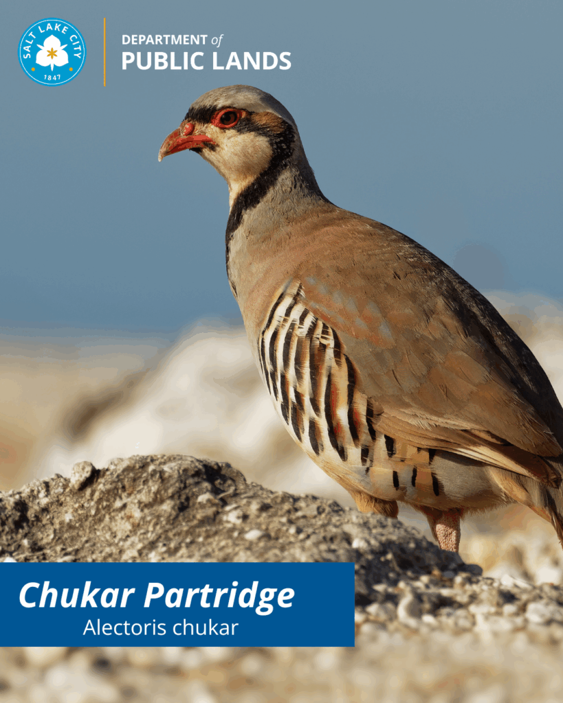 Originating from landscapes in the Middle East and spanning through Asia, the Chukar Partridge has adapted incredibly well to our slice of the Rocky mountain Range. These medium sized birds can often be seen in our Foothills area where they feed off our invasive Cheatgrass along with native foliage and insects.
