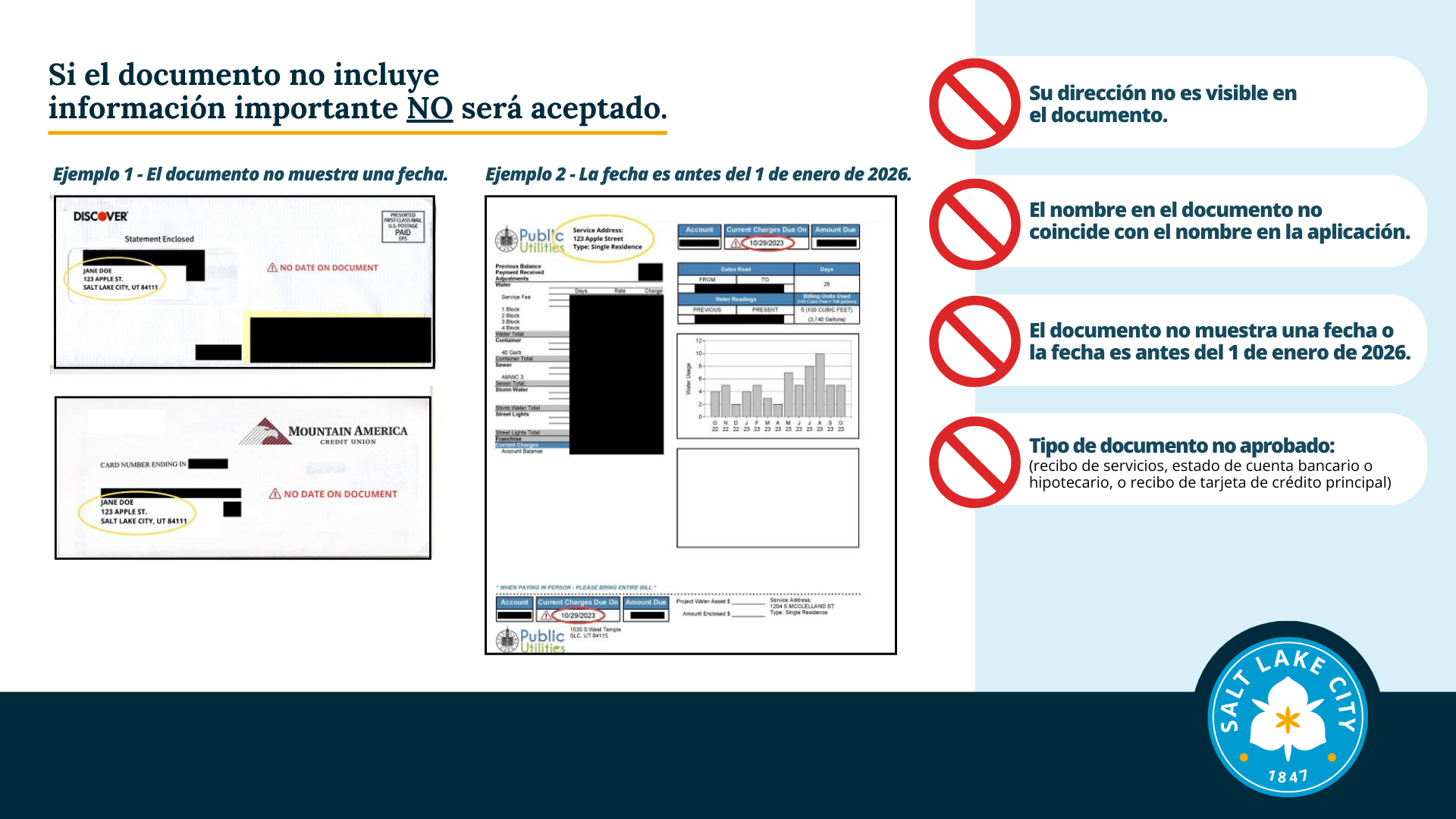 - A bill being under a spouse’s name (the name on the application must match the name on the document).