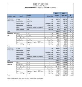 For fiscal year 2025 (July 1, 2024 – June 30, 2025), we have proposed a 4% rate increase to our rates for our water and sewer utilities. We are also proposing 10% increases for the stormwater and street lighting utilities. This year, we have also proposed rate stabilization fees for our water and sewer utilities. These fees are dependent on the customer’s meter size.