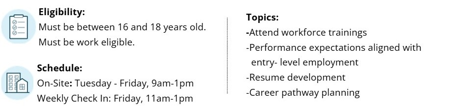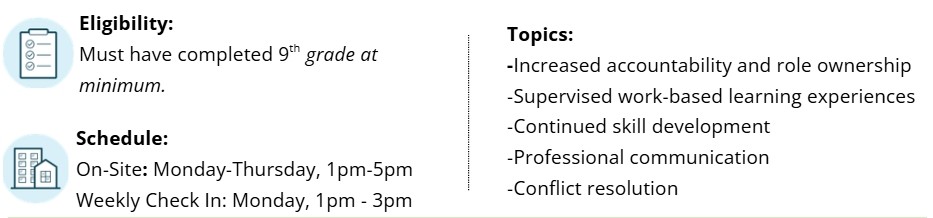 This tier is paid and prioritizes high school students who demonstrate readiness for formal workforce expectations. REQUIRES INTERVIEW.
